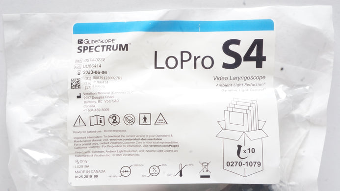 - Verathoon Medical 0574-0222 GlideScope Spectrum Video Laryngoscope LoPro S4 (x)