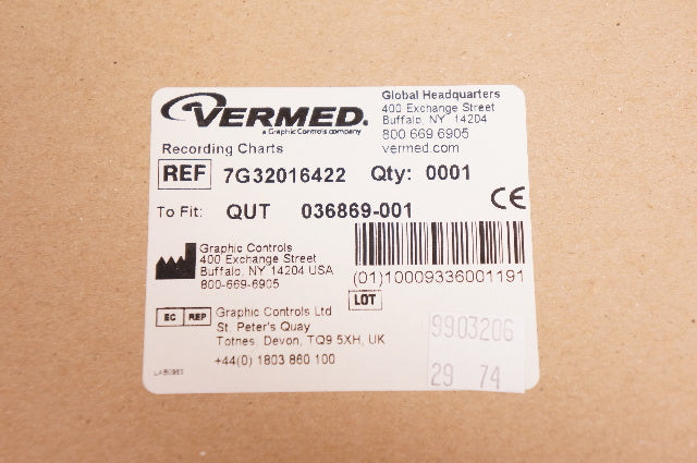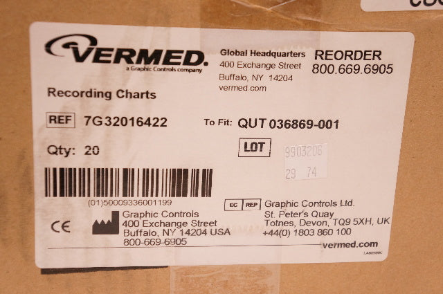 - Vermed 7G32016422 Recording Charts - Box of 20