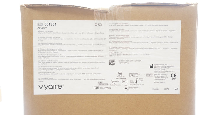 - Vyaire 001361 AirLife Adult Oxygen Medium Concentration Mask - Box of 50