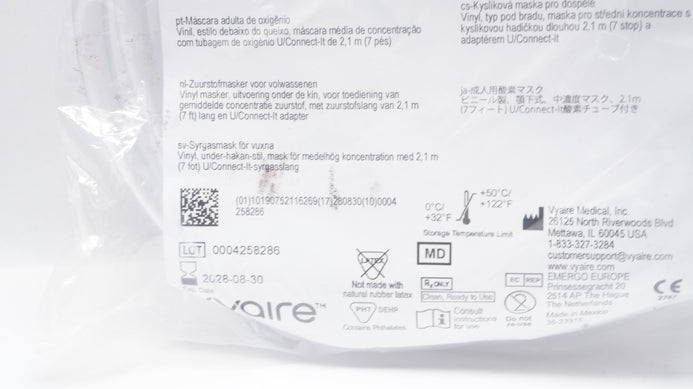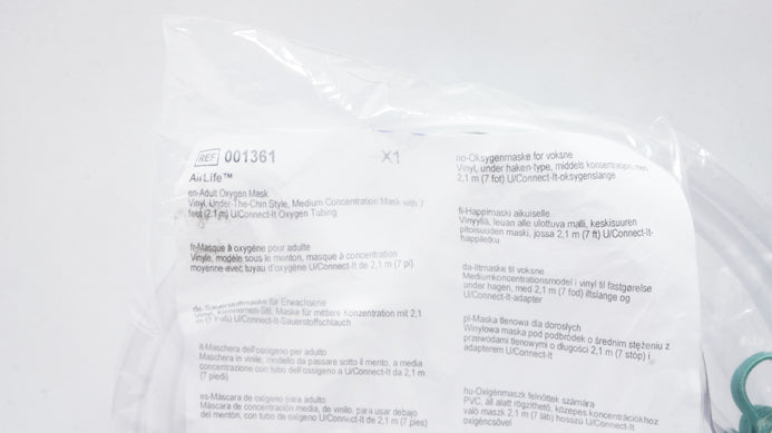 - Vyaire 001361 AirLife Adult Oxygen Medium Concentration Mask, Vinyl w/7ft Tubing