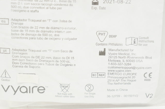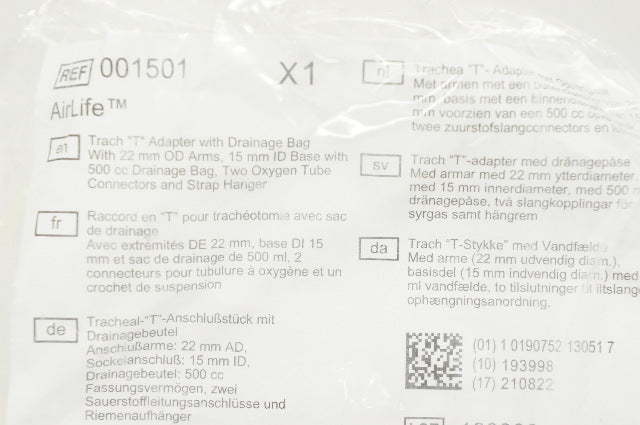 - Vyaire 001501 AirLife Trach "T" Adapter with Drainage Bag 500cc