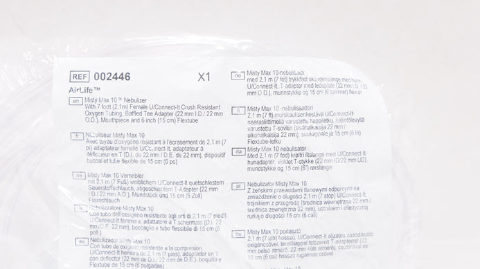 - Vyaire 002446 Airlife Misty Max 10 Nebulizer w/ Female Oxygen Tubing 7ft.