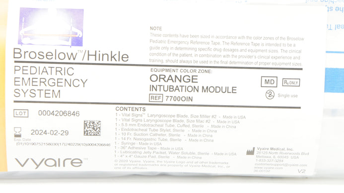 - Vyaire 7700OIN Broselow/Hinkle Intubation Module, Orange (x)