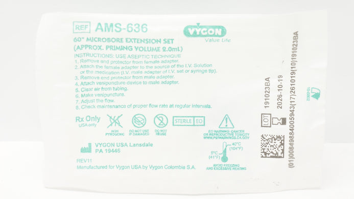 - Vygon AMS-636 Microbore Extension Set Approx. Priming Volume 2.0mL x 60inch