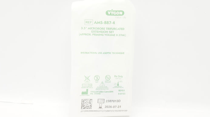 - Vygon AMS-887-4 Microbore Trifurcated Extension Set 3.5inch, Prim. Vol. 0.37mL