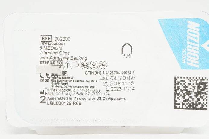 - Weck 002200 Horizon 6 Medium Titanium Clips with Adhesive Backing 1/1