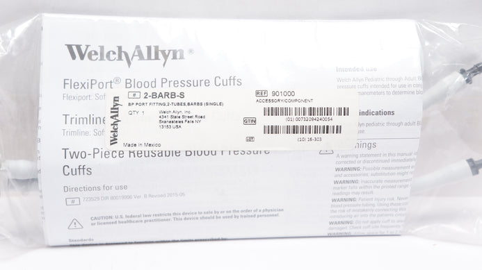 - Welch Allyn 901000 2-BARB-S BP Port Fitting, 2-Tubes, Barbs Single