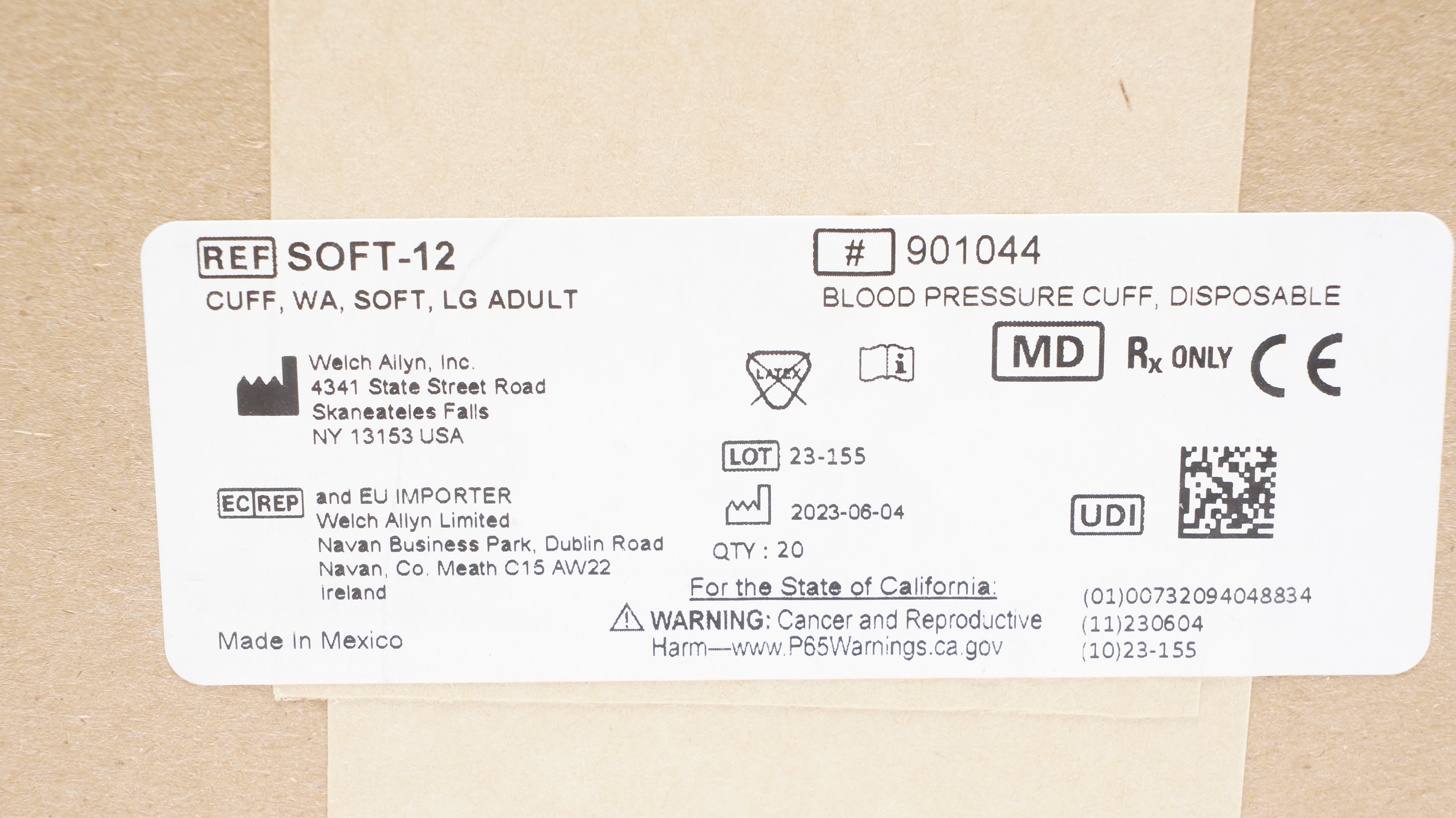 - Welch Allyn SOFT-12 Blood Pressure Cuff, Disposable, Soft,LG Adult - Box of 20