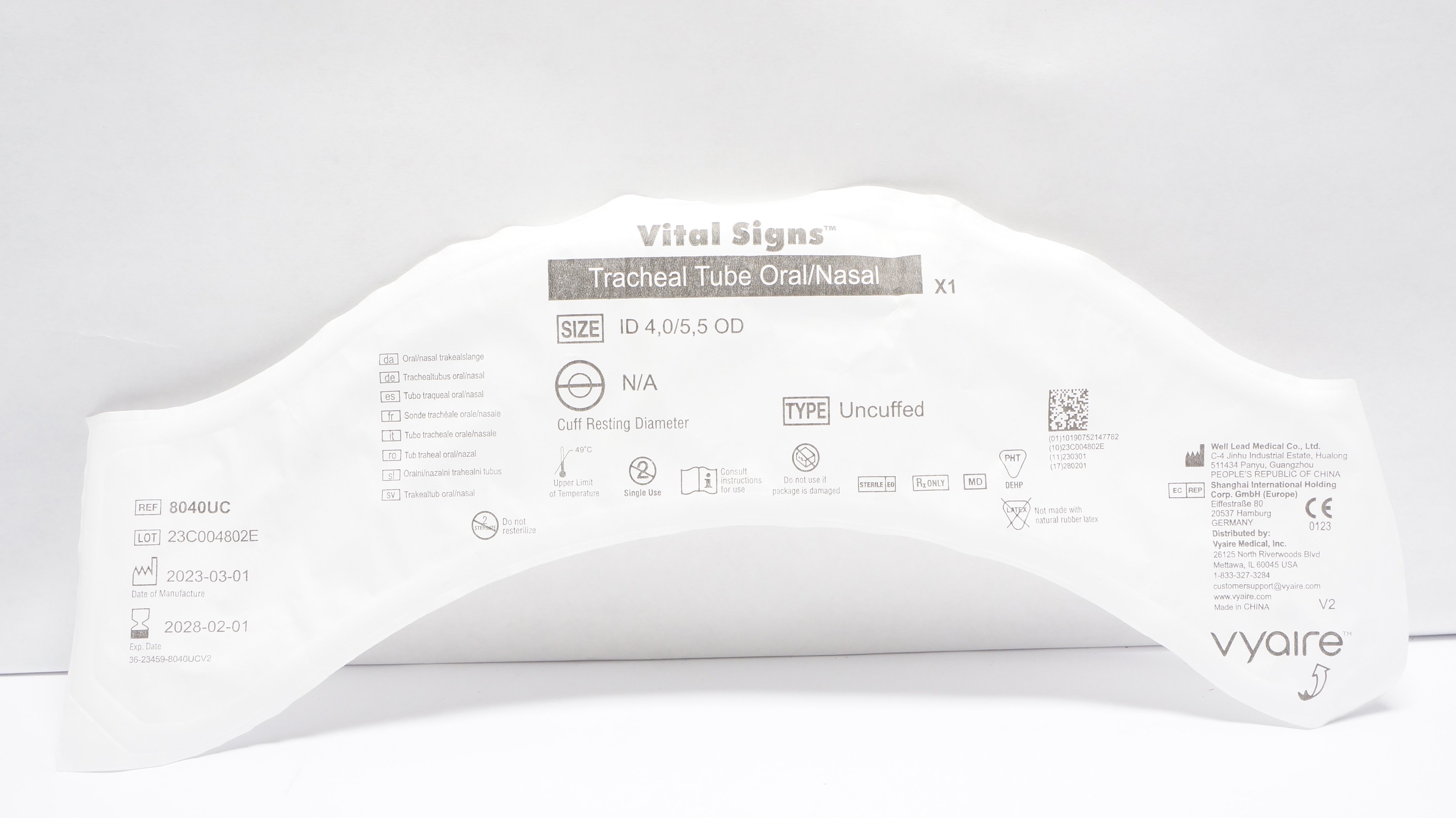 - Well Lead Medical 8040UC Vital Signs Tracheal Tube Oral/Nasal Uncuffed 4.0 ID