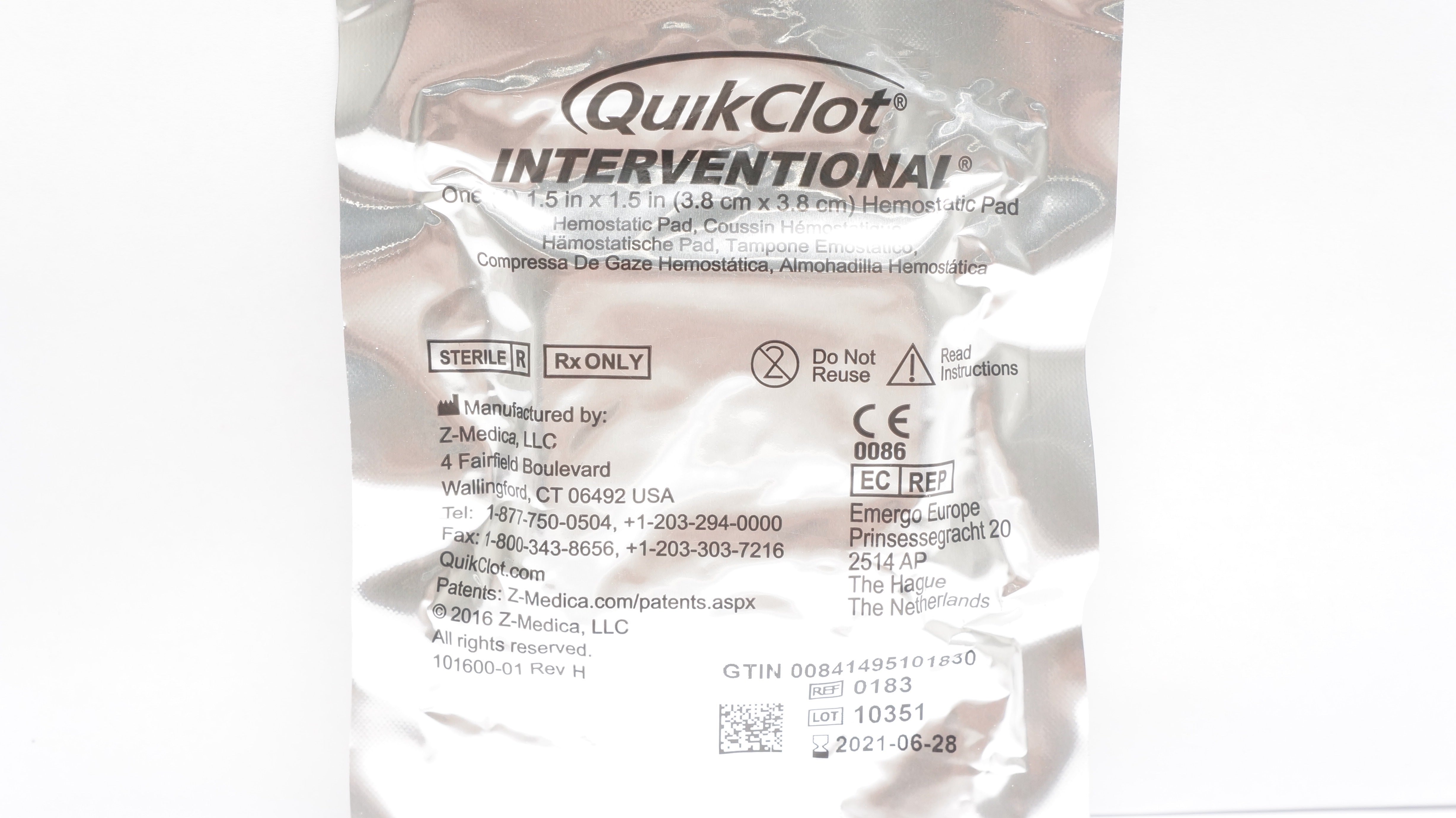 - Z-Medica 0183 QuikClot Interventional 1.5inch x 1.5inch (x)