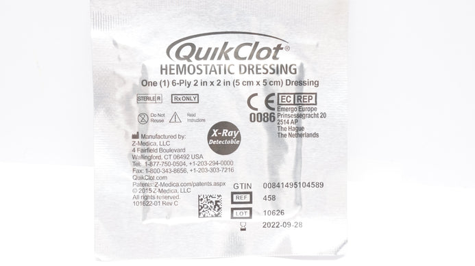 - Z-Medica 458 QuickClot Hemostatic Dressing 6-Ply 2inch x 2inch (x)