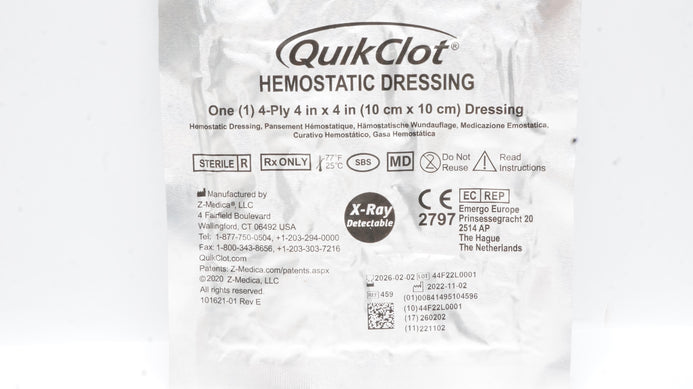 - Z-Medica 459 QuikClot Hemostatic Dressing 4-Ply 4 x 4inch