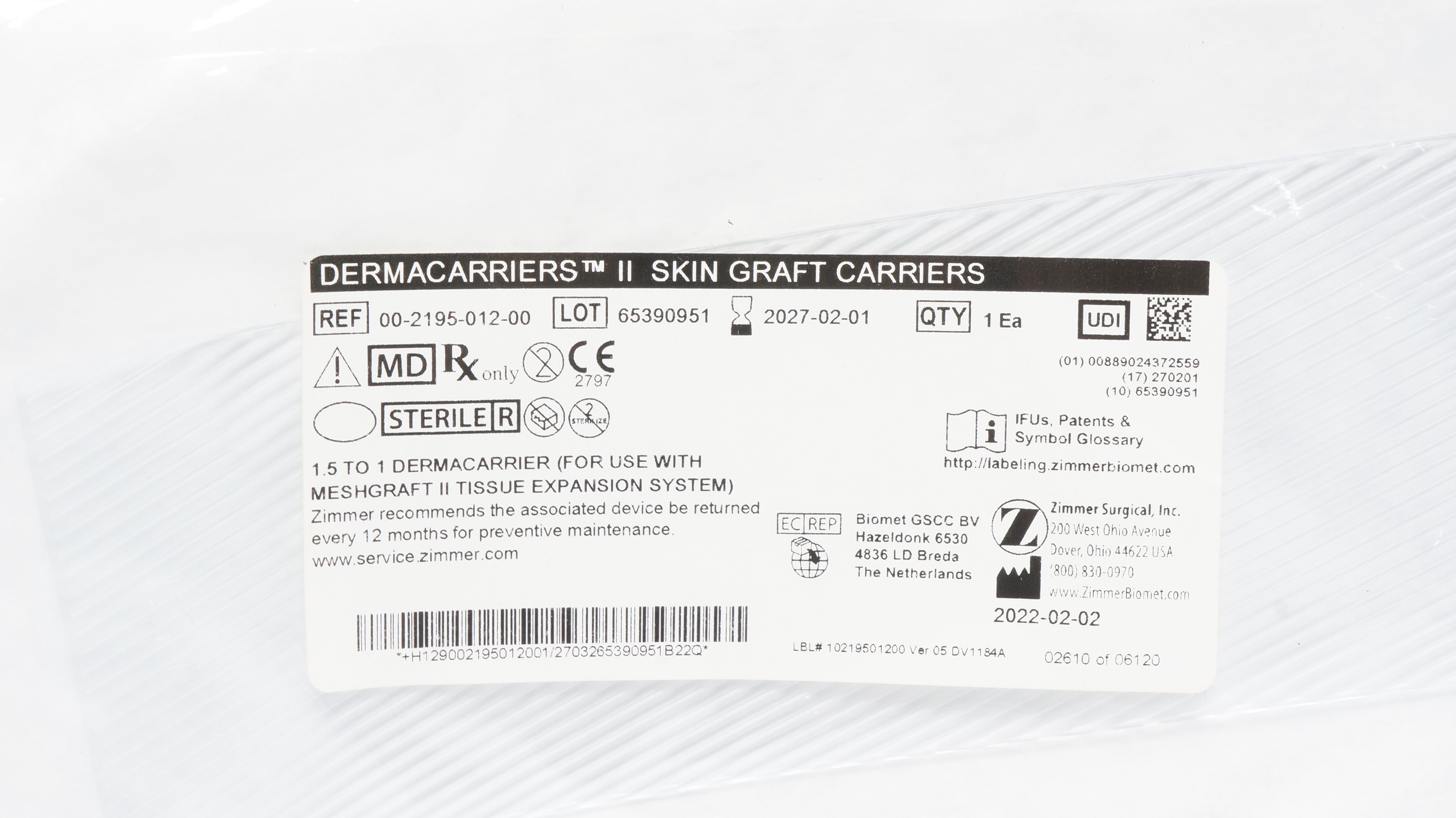 - Zimmer 00-2195-012-00 Dermacarriers II Skin Graft Carriers 1.5 to 1