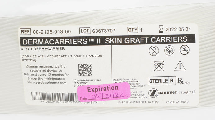 - Zimmer 00-2195-013-00 Dermacarriers II Skin Graft Carriers 3to1 Dermacarrier (x)
