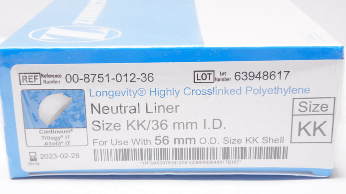 - Zimmer 00-8751-012-36 Highly Crosslinked Polyethylene,Neutral Liner,KK/36mm (x)