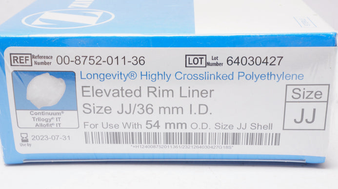 - Zimmer 00-8752-011-36 Highly Crosslinked Polyethylen,Elevated Rim Liner JJ/36mm