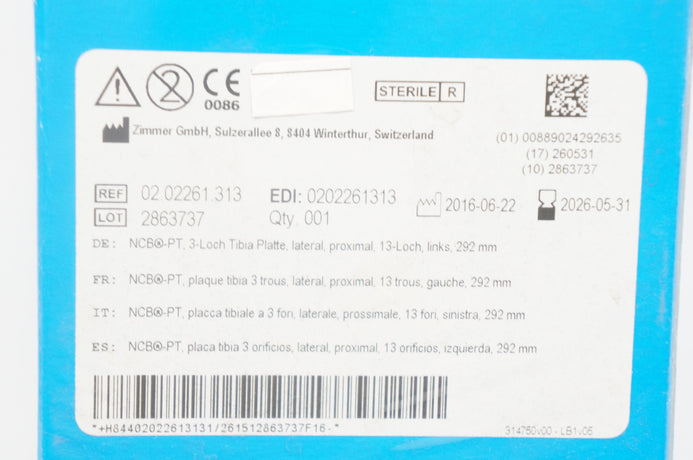 - Zimmer 02.02261.313 NCB-PT, 3-Loch Tibia Platte, Lateral, Proximal, 13-Locks