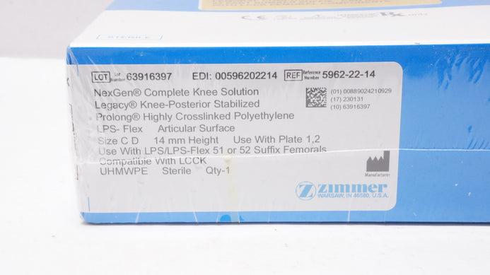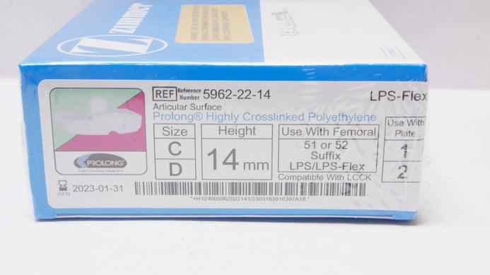 - Zimmer 5962-22-14 Prolong Polyethylene Articular Surface Size C/D 14mm (x)