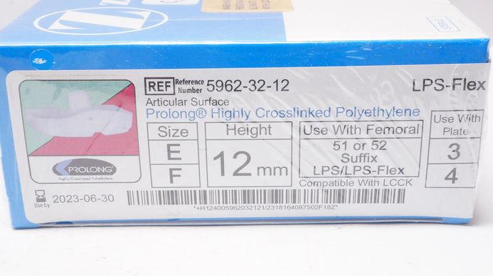 - Zimmer 5962-32-12 Prolong Highly Crosslinked Polyethylene Size E/F 12mm