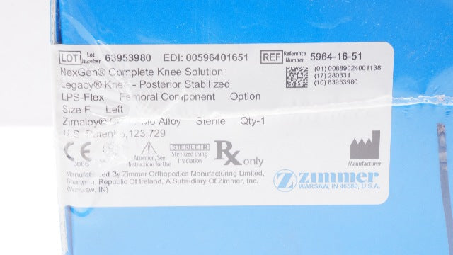 - Zimmer 5964-16-51 NexGen Complete Knee Solution Femoral Component Left, Size F