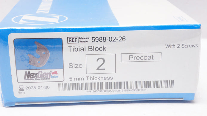 - Zimmer 5988-02-26 NexGen Complete Knee Solution, Tibial Block Precoat Size 2