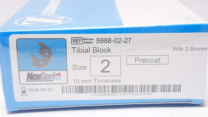 - Zimmer 5988-02-27 NexGen Complete Knee Solution, Tibial Block,Size 2