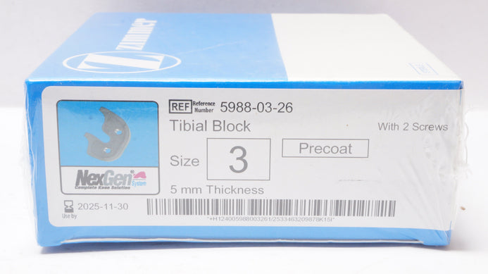 - Zimmer 5988-03-26 NexGen Complete Knee Solution, Tibial Block Precoat,Size 3