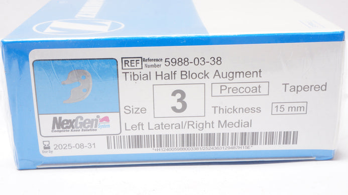 - Zimmer 5988-03-38 NexGen Complete Knee Solution,Tibial Half Block Augment,Size 3