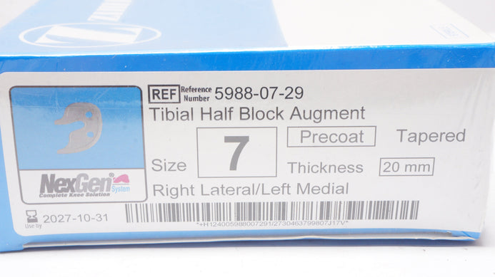 - Zimmer 5988-07-29 NexGen Complete Knee Solution,Tibial Half Block Augment,Size 7