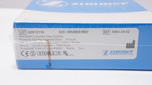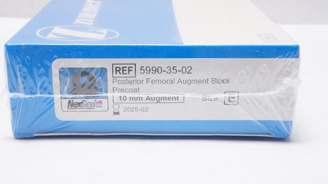 - Zimmer 5990-35-02 Posterior Femoral Augment Block Precoat 10mm Augment Size E