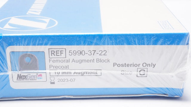 - Zimmer 5990-37-22 Posterior Femoral Augment Block Precoat 10mm Augment Size G