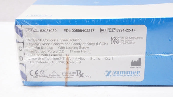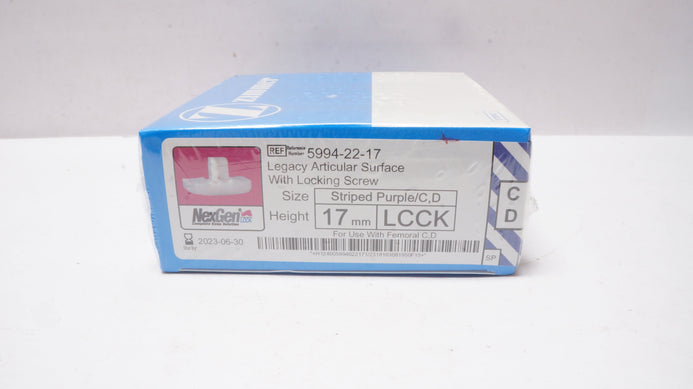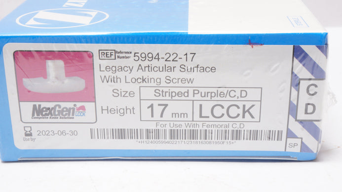- Zimmer 5994-22-17 legacy Articular Surface W/Locking Screw, Striped Purple/C,D