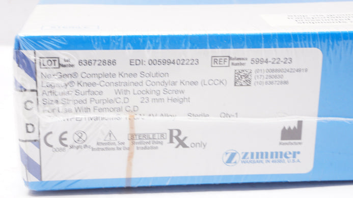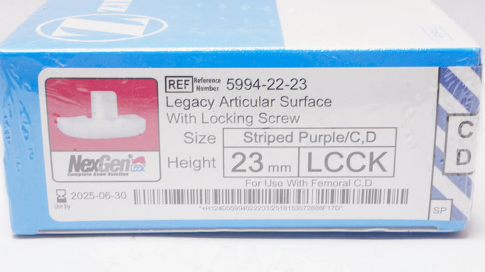 - Zimmer 5994-22-23 legacy Articular Surface W/Locking Screw, Striped Purple/C,D