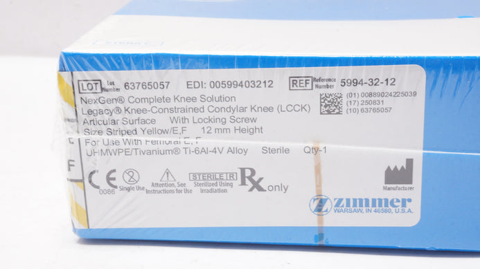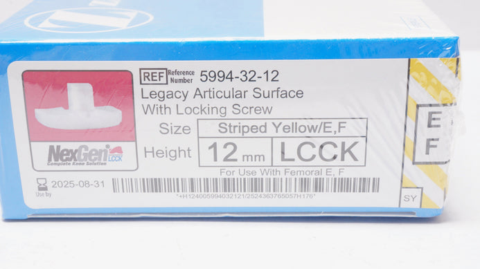 - Zimmer 5994-32-12 Legacy Articular Surface w/Locking Screw, Striped Yellow/E,F