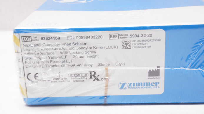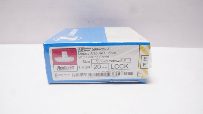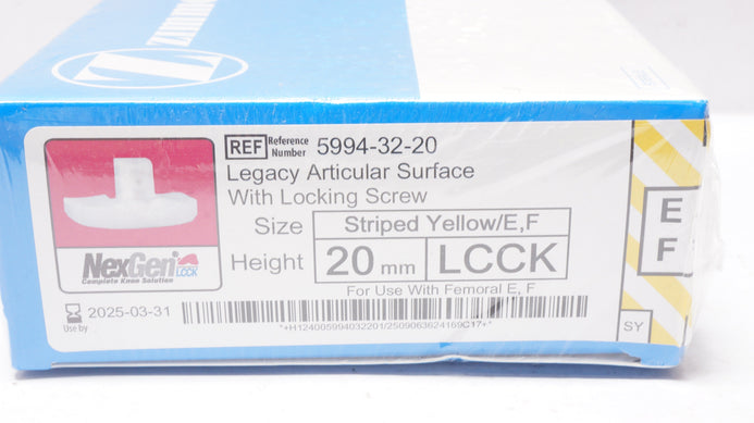 - Zimmer 5994-32-20 Legacy Articular Surface w/Locking Screw, Striped Yellow/E,F