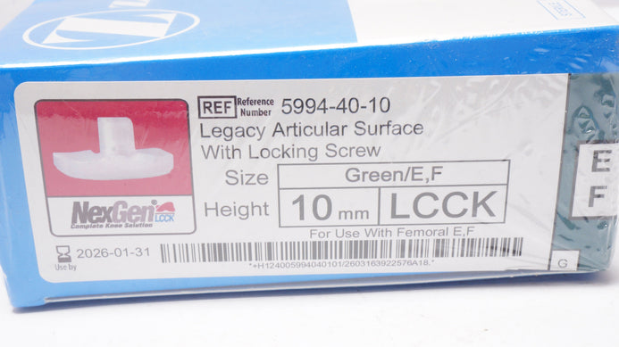 - Zimmer 5994-40-10 NexGen Legacy Articular Surface With Locking Screw