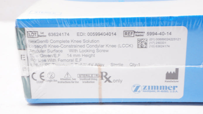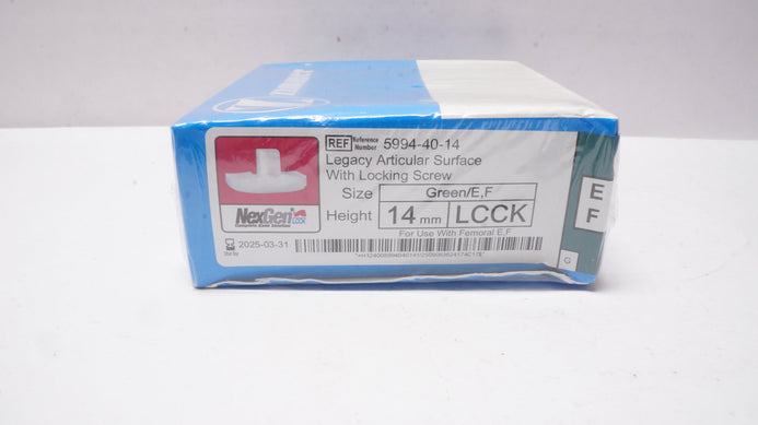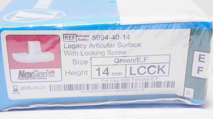 - Zimmer 5994-40-14 Legacy Articular Surface w/Locking Screw Size Green/E,F 14mm