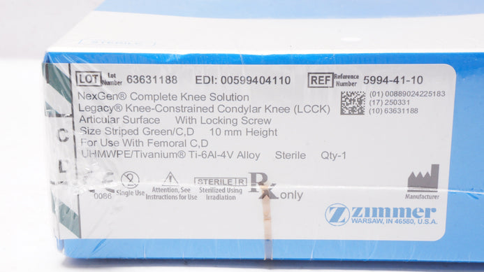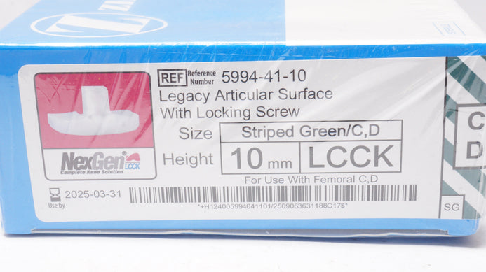 - Zimmer 5994-41-10 Legacy Articular Surface w/Locking Screw, Striped Green/C,D