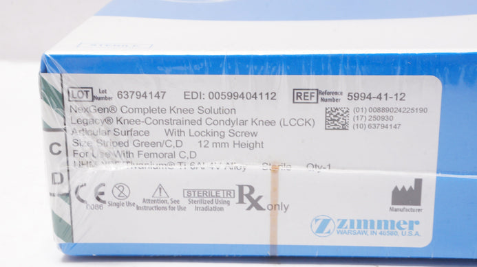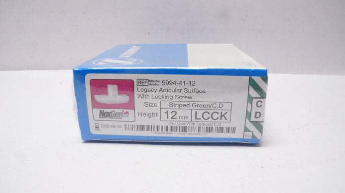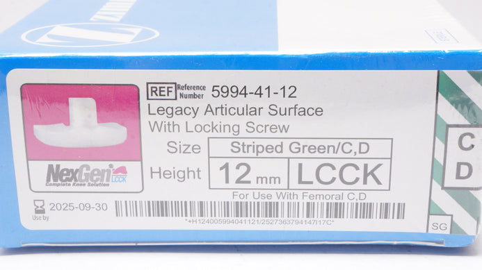 - Zimmer 5994-41-12 Legacy Articular Surface w/Locking Screw, Striped Green/C,D