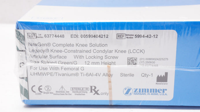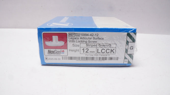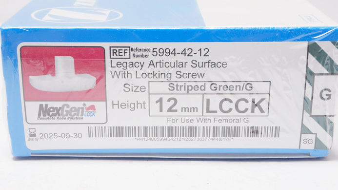 - Zimmer 5994-42-12 Legacy Articular Surface w/Locking Screw, Striped Green/G 12mm