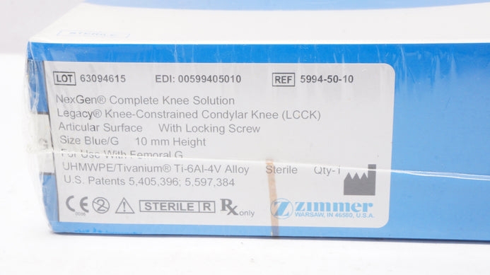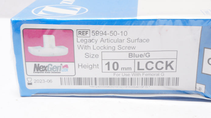 - Zimmer 5994-50-10 NexGen Legacy Articular Surface w/Screw Size Blue/G 10mm