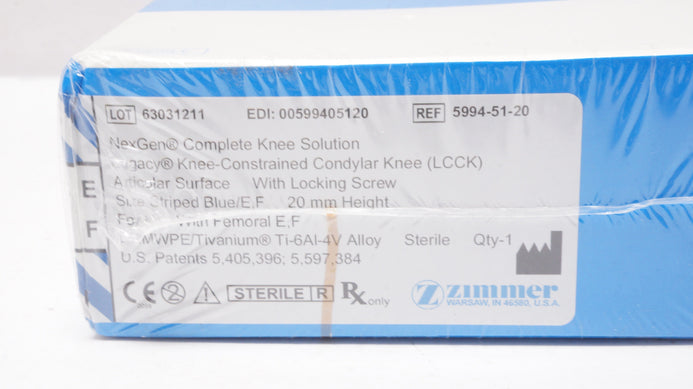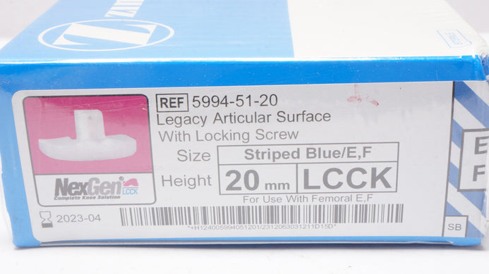 - Zimmer 5994-51-20 legacy Articular Surface W/Locking Screw, Striped Blue/E,F (x)
