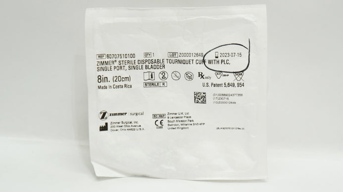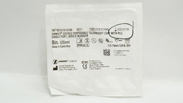 - Zimmer 60707510100 Disposable Tourniquet Cuff w/PLC, Port Bladder 8inch (x)