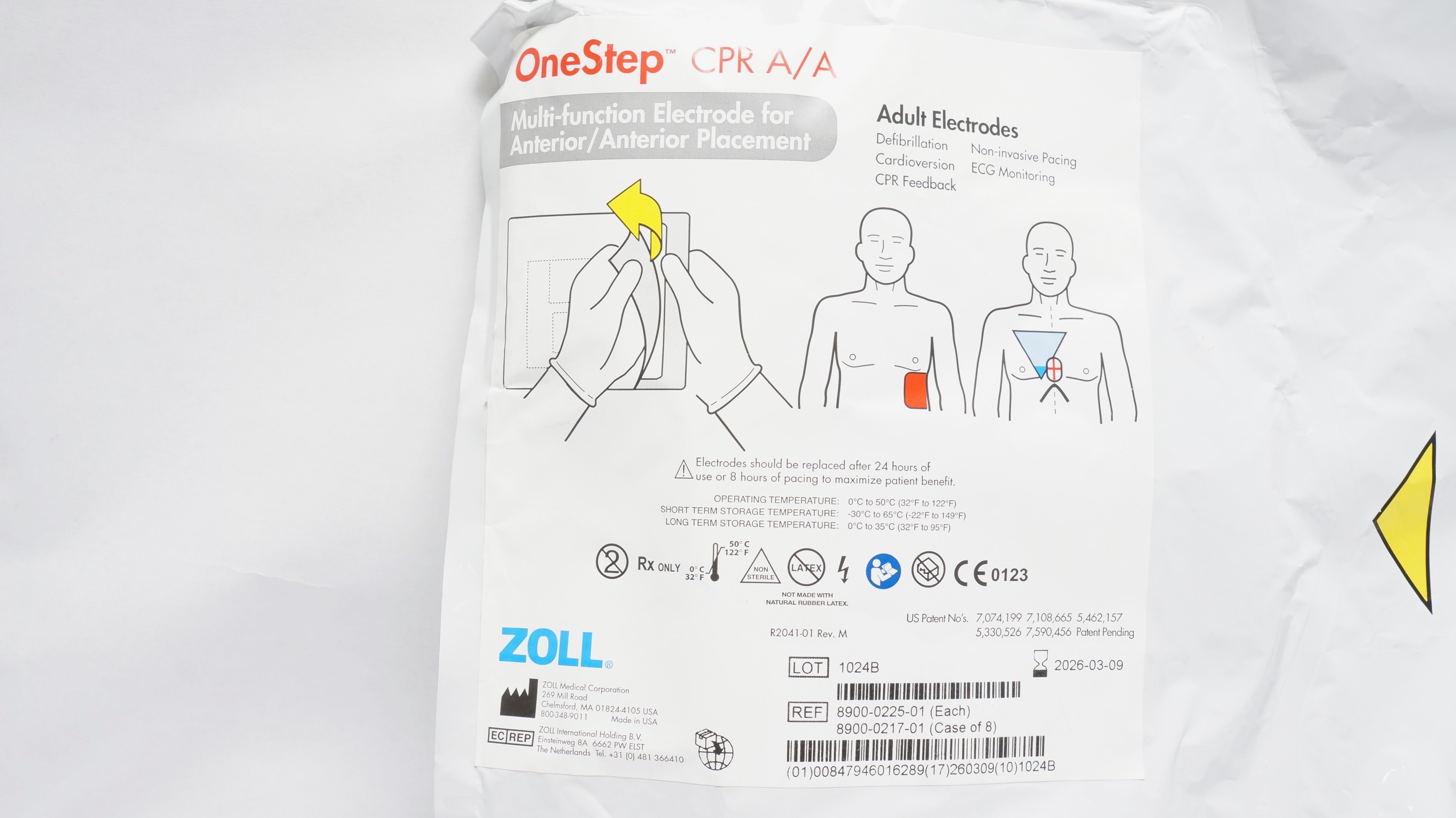 - Zoll 8900-0225-01 OneStep CPR A/A Adult Multi-Function Electrodes