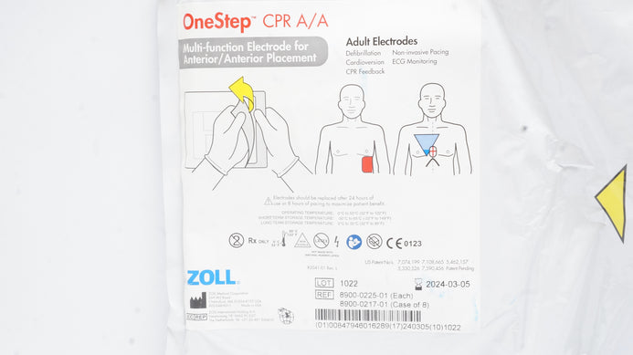 - Zoll 8900-0225-01 OneStep CPR A/A Multi-Function Adult Electrodes (x)