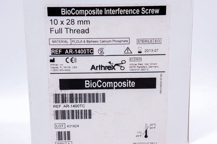 - Arthrex AR-1400TC BioComposite Interference Screw 10 x 28mm, Full Thread (x)