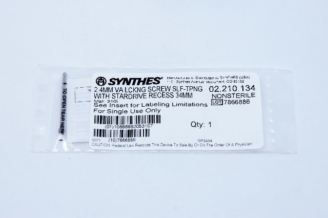 - Synthes 02.210.134 2.4mm VA Locking Screw Self-Tapping W/ Stardrive Recess 34mm