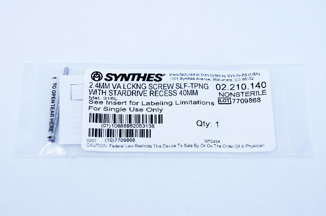 - Synthes 02.210.140 2.4mm VA Locking Screw Self-Tapping W/ Stardrive Recess 40mm
