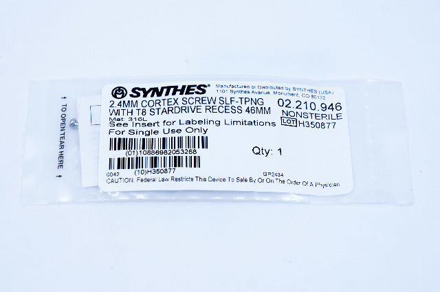 - Synthes 02.210.946 2.4mm Cortex Screw Self-Tapping With T8 Stardrive Recess 46mm