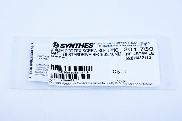 - Synthes 201.760 2.4mm Cortex Screw Self-Tapping With T8 Stardrive Recess 10mm
